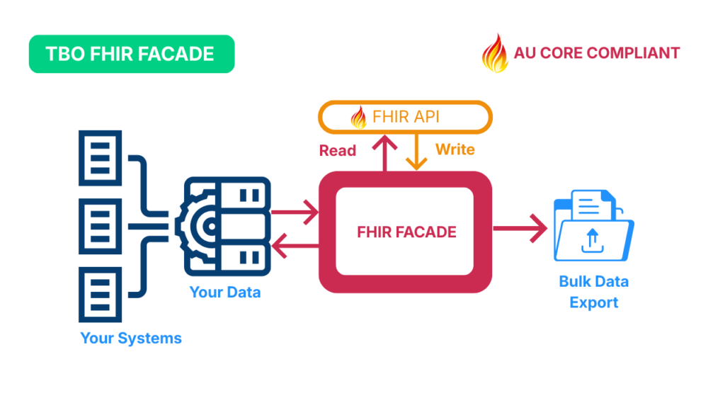 Our FHIR Facade architecture allows you to leapfrog into the future of digital health without a high-risk, multi-year migration. We build a high-performance, RESTful API layer that sits directly over your existing legacy databases (EHRs, EMRs, or Lab Systems), translating proprietary data formats into the global HL7 FHIR standard in real-time.
