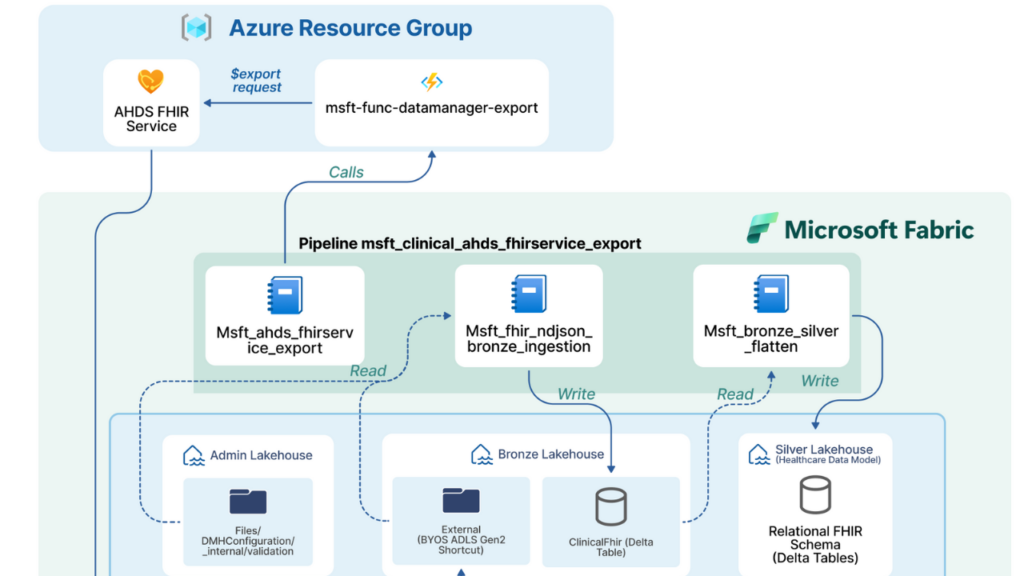 True interoperability goes beyond simple data exchange. We implement Azure Health Data Services to ingest, manage, and persist clinical data in the HL7 FHIR format. By standardizing diverse data streams into a unified FHIR-based Lakehouse, we create “data liquidity” across your entire enterprise.